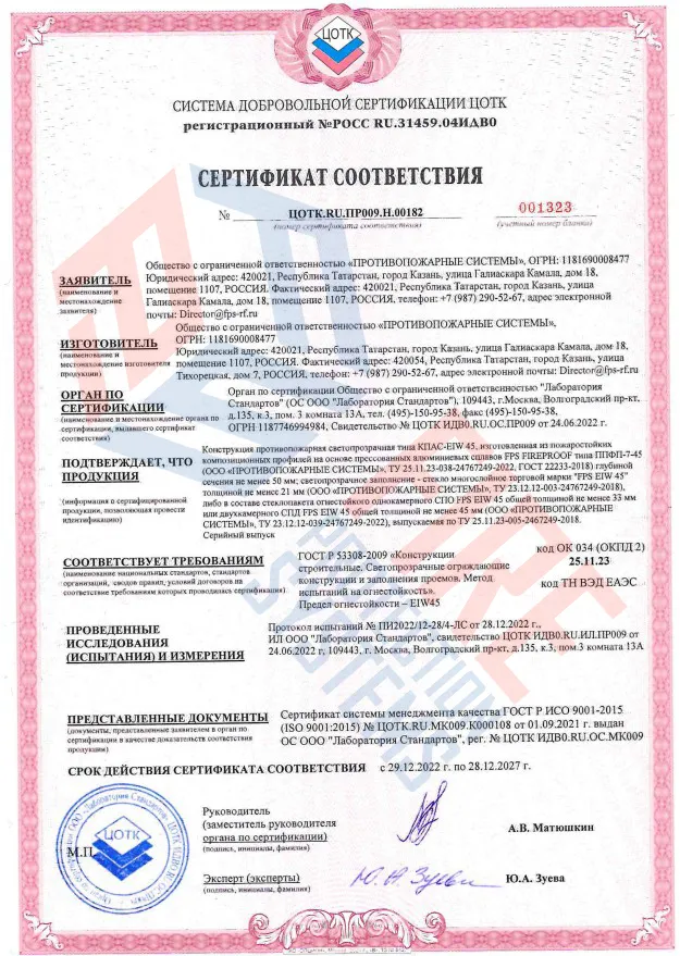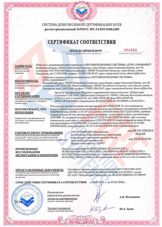 Соответствие нормам – сертифицированы по ГОСТ Р 53308-2009 и другим стандартам пожарной безопасности.